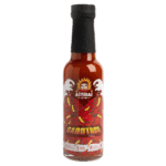 Ingredients: Chilis (Carolina Reaper, Moruga Scorpion, Ghost Pepper, etc.), water, apple cider vinegar, salt, garlic, spices (including cumin, fennel, Sichuan pepper), cane sugar.