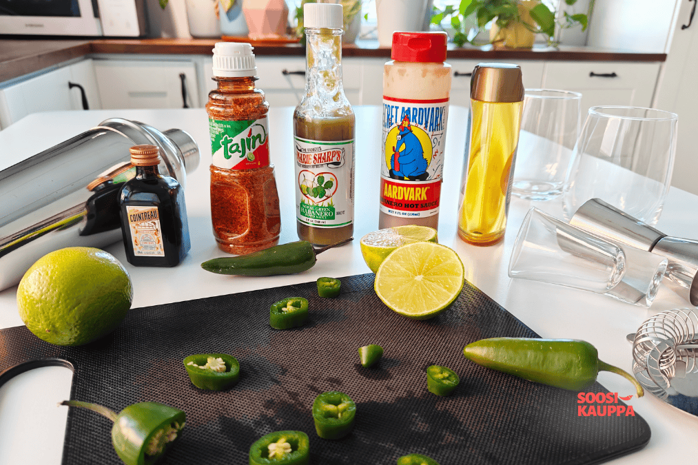 🌶️ Soosikaupan vinkki: Jos haluat tulisuuden nousevan tasaisemmin ilman terävää “iskua”, anna jalapenoviipaleiden hautua tequilassa 5 minuuttia ennen ravistamista.