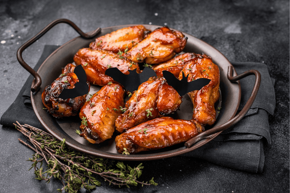 - Tumma marinadi auttaa tuomaan halutun ilmeen siiville, mutta voit lisätä tarjoiluastialle lepakkokoristeita, jotta teema tulee varmasti esille.