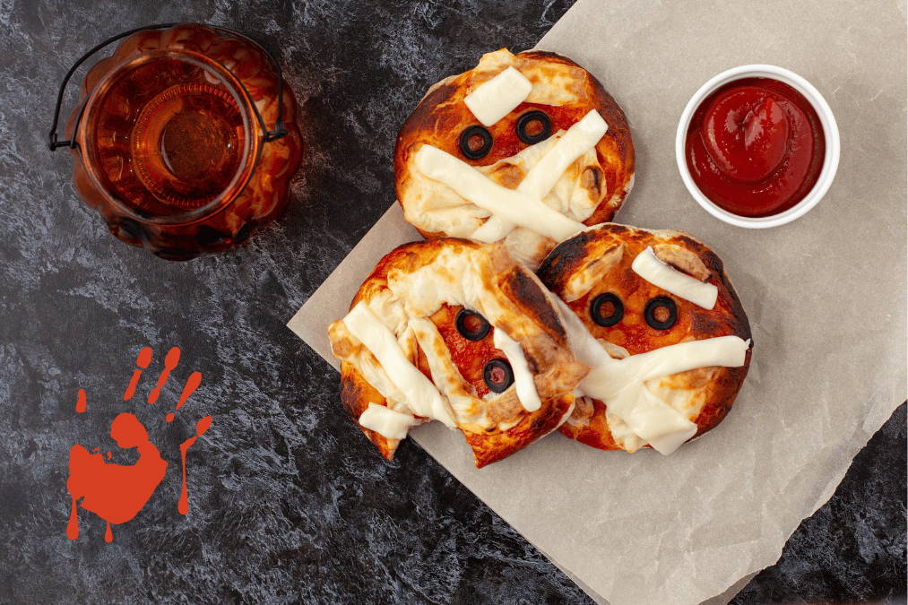 - Laita tippoja chilikastiketta muumioille “silmiksi” ja tarjoile.