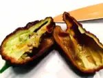 Hedelmä on ryppyinen ja epäsäännöllisen muotoinen, kooltaan keskikokoinen. Kypsänä väri on tummanruskea, lähes suklaanvärinen. Hedelmäliha on ohuehkoa ja sisältää erittäin runsaasti kapsaisiinia ja siemeniä, minkä vuoksi tulisuus vapautuu nopeasti käsiteltäessä ja kypsennettäessä.