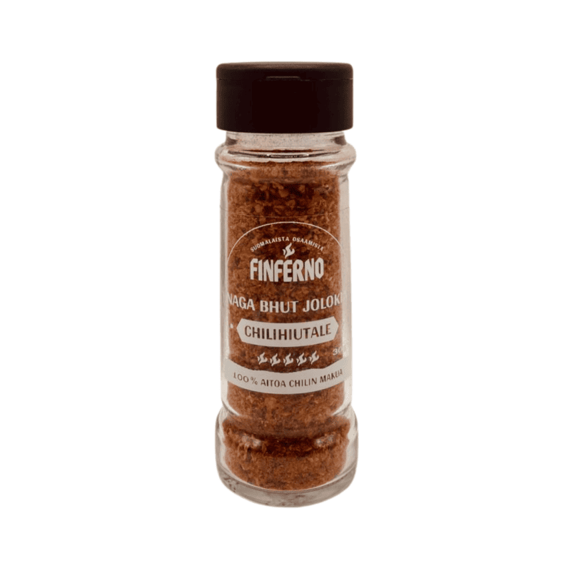 Alun perin Intiasta kotoisin oleva Naga Bhut Jolokia, joka tunnetaan maailmalla myös nimellä Ghost Pepper, on legendaarinen lajike, joka rikkoi aikoinaan miljoonan Scovillen haamurajan. Tämä chilihiutale on suoraviivainen ja konstailematon valinta silloin, kun ruokaan halutaan äärimmäistä, viipyilevää ja todella voimakasta tulisuutta.