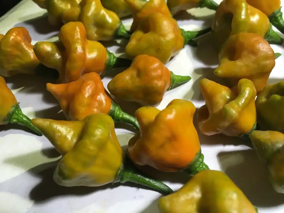 Hedelmä on keskikokoinen, paksuhko ja selvästi teräväkärkinen. Muoto poikkeaa perinteisestä lyhtymäisestä Habanerosta, ja juuri tämä tekee lajikkeesta helposti tunnistettavan. Kypsänä hedelmä on sinapinkeltainen tai oranssinpunertava. Podit ovat mehukkaita ja aromikkaita, ja yksi kasvi tuottaa tasaisesti satoa koko kasvukauden ajan.