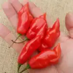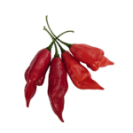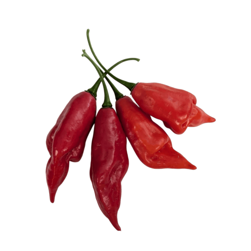 Hedelmä on pitkänomainen ja hieman kaareva tai suora, tyypillisesti noin 7–10 cm pitkä. Muoto on kartiomainen ja riippuva, kärjestä selvästi kapeneva. Kypsyessään väri muuttuu vihreästä oranssin kautta oranssinpunaiseksi tai punaiseksi. Kuori on vahamainen ja sileä tai kevyesti ryppyinen, ja hedelmäliha on ohutta mutta rapeaa.