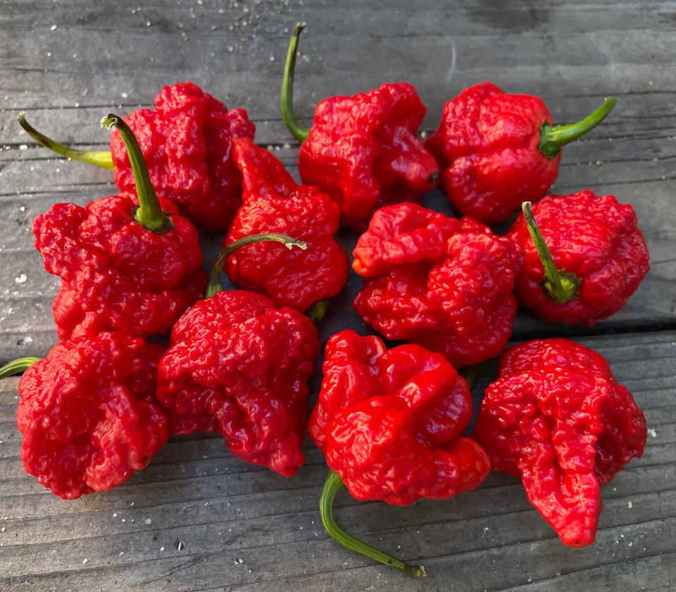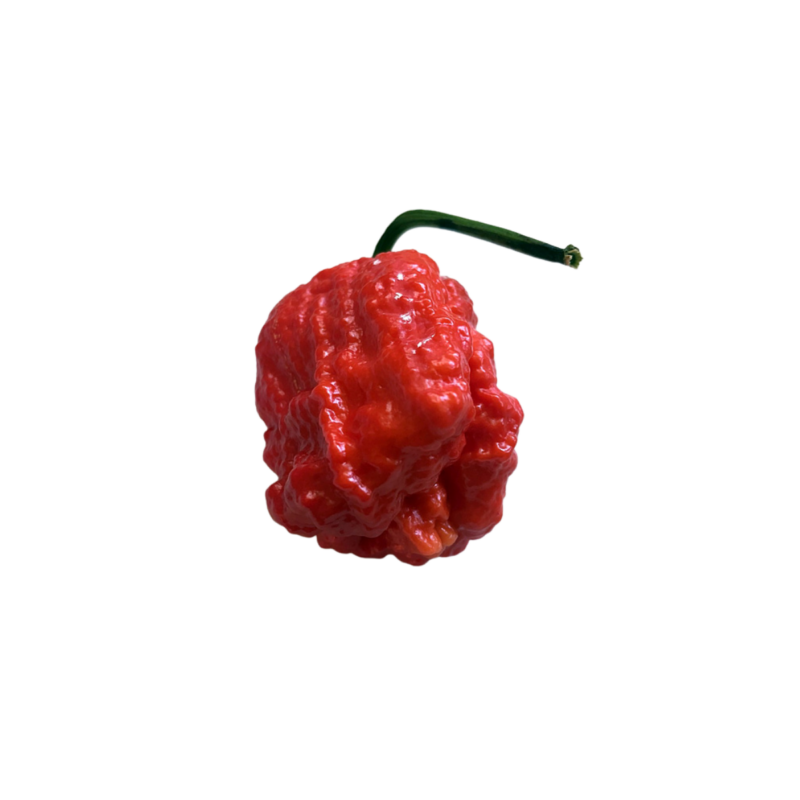 Hedelmä on keskikokoinen, voimakkaasti ryppyinen ja epäsäännöllisen muotoinen. Kypsänä väri vaihtelee tumman punaisen ja ruskehtavan sävyjen välillä. Hedelmäliha on ohuehkoa ja kapsaisiinipitoisuus erittäin korkea, minkä vuoksi tulisuus vapautuu nopeasti käsiteltäessä ja kypsennettäessä. Ulkonäkö ja rakenne kertovat jo ennen maistamista lajikkeen äärimmäisestä voimakkuudesta.