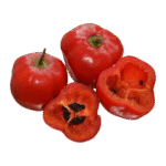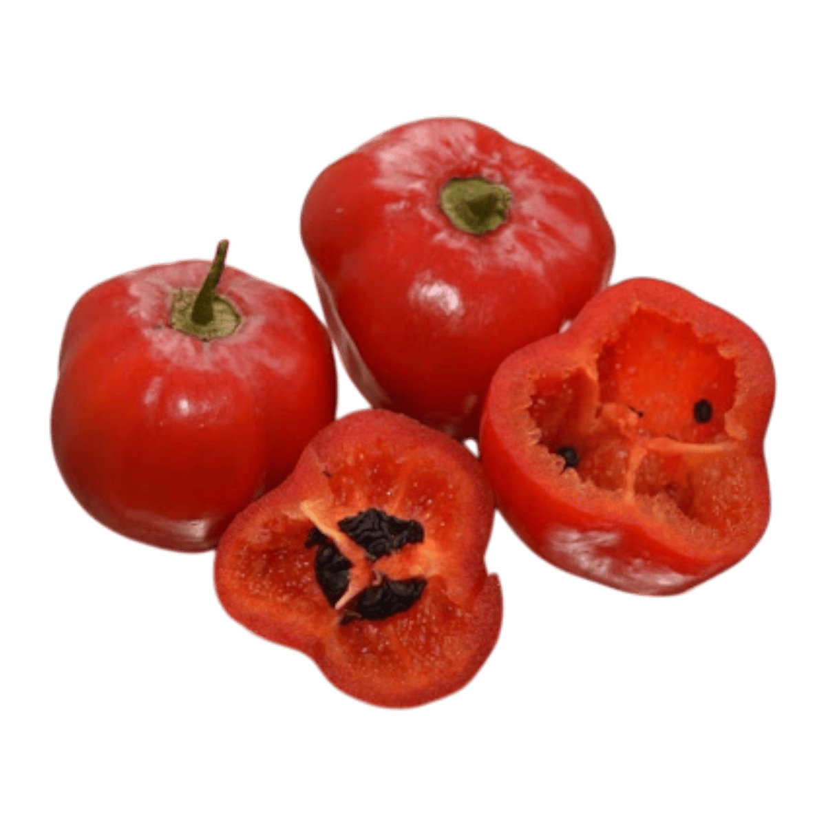 Hedelmä on paksuseinäinen, omenanmuotoinen ja kooltaan noin 5–7 cm pitkä ja 4–6 cm leveä. Kypsänä väri on kirkkaan punainen. Rocoton erikoisuus ovat sen mustat siemenet, jotka ovat kovia ja hitaasti itäviä. Paksun ja mehukkaan rakenteensa ansiosta hedelmät sopivat erinomaisesti lämpimiin ruokiin, joissa niiden maku ja tulisuus avautuvat parhaiten.