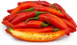 Hedelmä on kapea ja suora, yleensä 4–6 cm pitkä. Kypsänä väri on kirkkaan punainen, mutta hedelmät voidaan kerätä myös vihreinä. Kuori on sileä ja melko ohut, ja rakenne pysyy rapeana myös kypsänä.